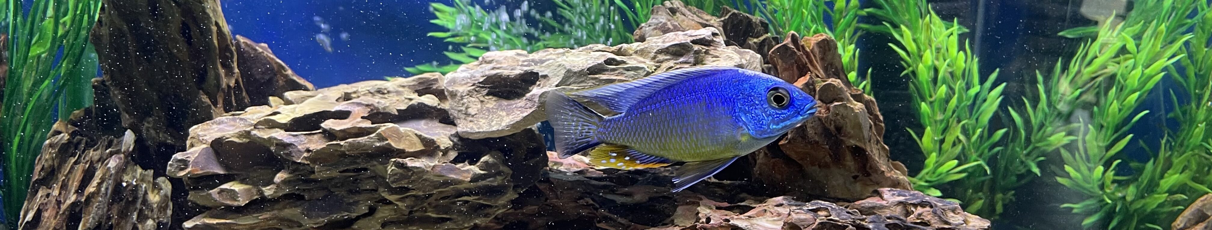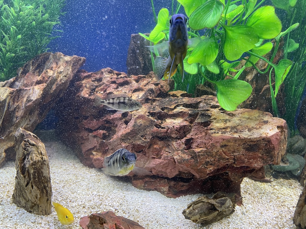 The Taiwan Reef is the star of our 75 gallon aquarium. The male, pictured here, is “The Tank Boss”. Breeding pair. Female has eggs in her mouth.